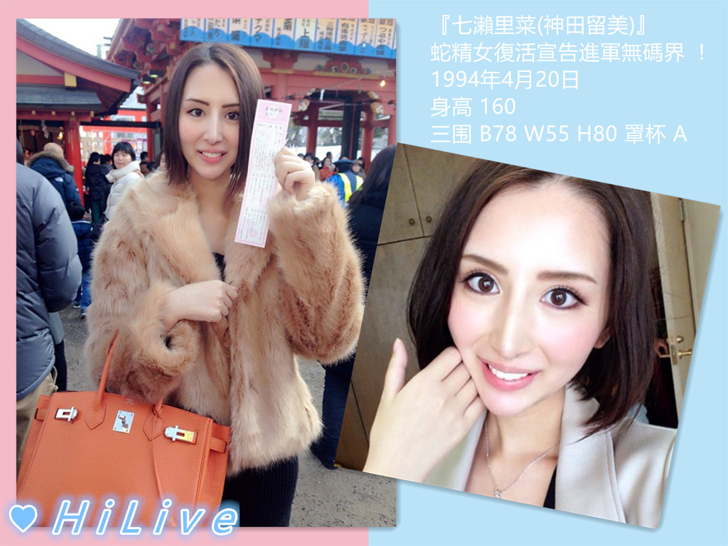 因為整型的事件讓日本網友驚呼『七瀨里菜(神田留美)』完全大崩壞紛紛哭喊著:『當時那位模樣清秀,AV界的新星去哪裡了?(噴淚)』