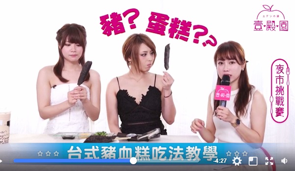 既然麻辣鴨血、臭豆腐都登場了,那豬血糕怎麼可以輸呢,台灣的朋友們~~豬血糕淋上醬油+花生粉根本就是史上霹靂無敵好吃台灣美食呀,旋轉~灑花~果真偉大的豬血糕一致獲得女神們好評!(但...其實女神們根本不知道那是血做的吧XD)