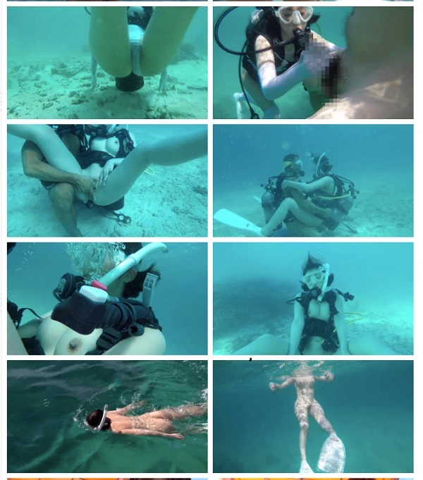 作品名稱是「変態マリンスポーツ ネイキッドスキューバー」,作品封面看起來好像只有穿著泳衣拍照的感覺,從影片中看到片商的確將整個場景搬到了海邊,並開始讓「暗黑郭雪芙」水野朝陽穿著潛水設備準備下海,首先是背上氣瓶、帶上面罩,並與對手的男優潛下海裡,既然有畫面就代表這時攝影師也下海去了。