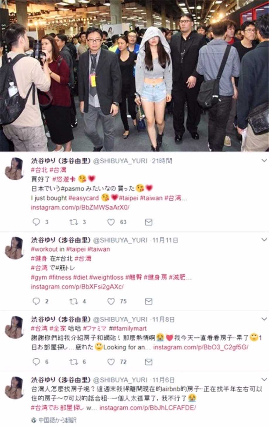 (涉谷由里悄悄來訪,被眼尖粉絲發現,讓大會得知後立刻派遣保全維護,看看台灣多麼貼心)