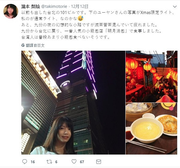 也有網友看了影片的擷圖後說,「導演,辛苦了。」值得一提的是瀧本梨繪最近才剛來台灣觀光哦。