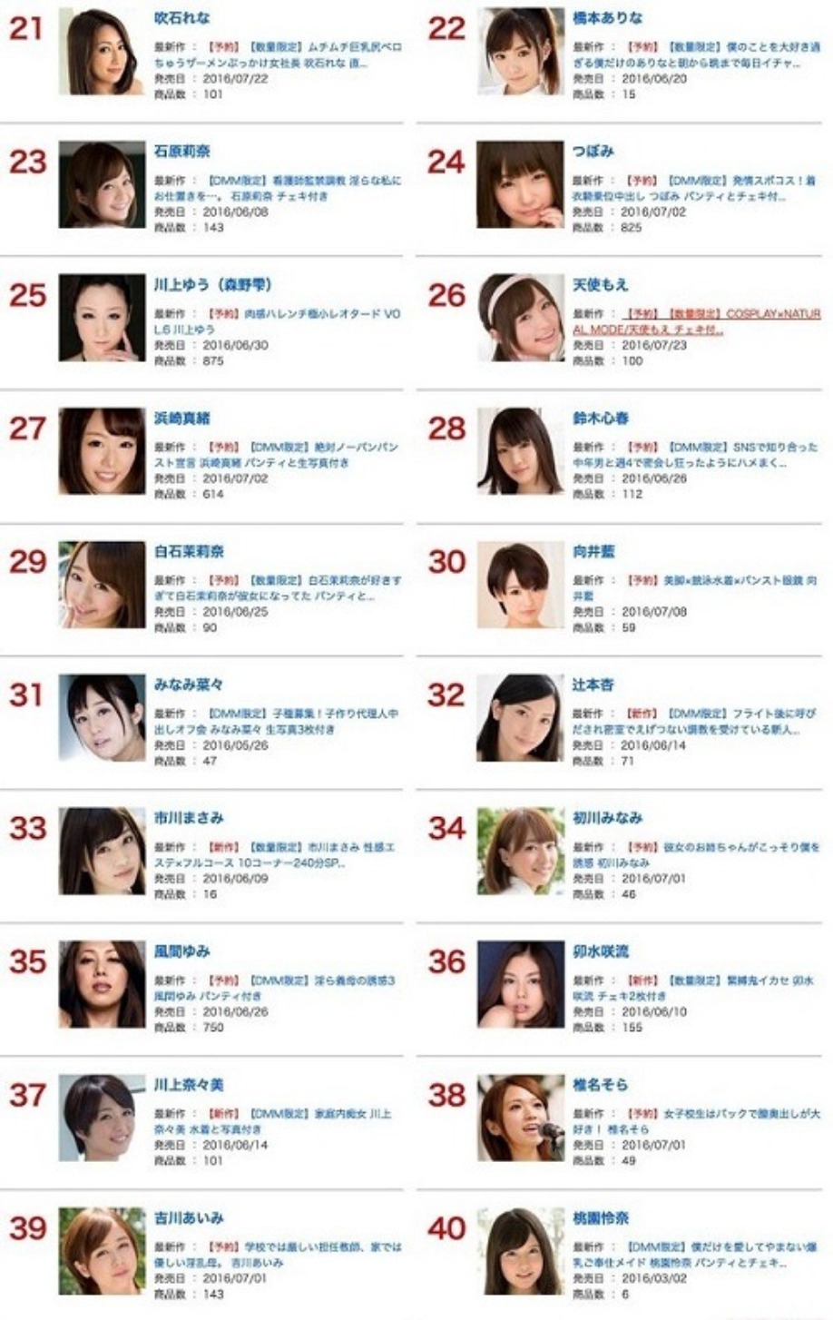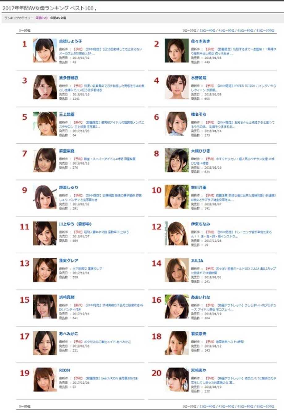 《DMM》2017年度銷售排行榜TOP20 波多野結衣居然輸給她!