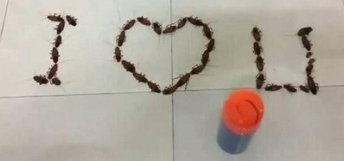 (曾經有瘋狂的男子為了表白用小強排出I LOVE U 啊!好可怕的藝術)