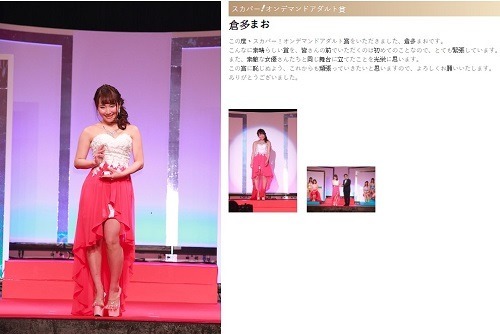 得獎的是「倉多真央(倉多まお)」!2012年就出道的她,有著一張清純可愛的臉,加上她那種鄰家女孩特有的清新感與親切感出道後就累積了不少影迷,有名的就是她肉感身材,會下海的原因令人噴飯,居然是為了取悅男朋友,想要學習更多性愛技巧而毅然決然進入AV界XD,如此偉大的愛情造成粉絲強力點播她的作品。