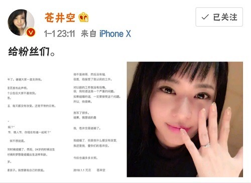由於不少男性粉絲在2018年第一天就心碎女神變成別人的,至今仍說無法接受這個事實,看到50分鐘的蒼井空無碼AV影片流出應該拍手叫好,照理來說是不會出現的無碼片的呀,原來不知道是誰這麼壞心,把蒼井空過去所拍攝且未加上格子的「無碼片」整個撒出來,已經離開AV女優這個身份很久的『童顏巨乳』蒼井空,再度引爆話題!