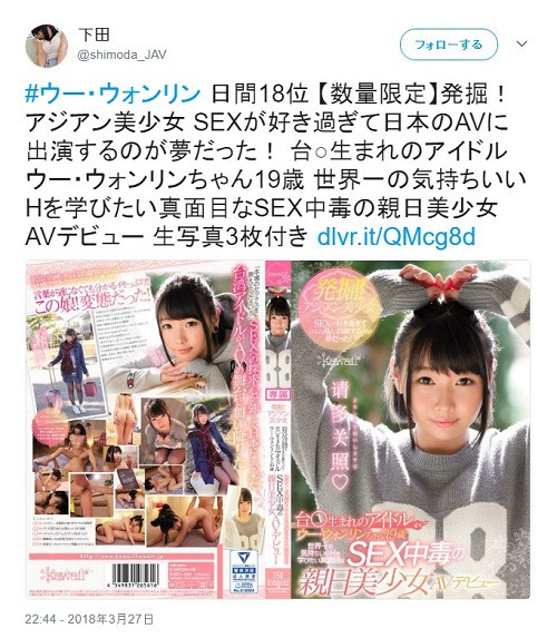 作品名:発掘!アジアン美少女 SEXが好き過ぎて日本のAVに出演するのが夢だった! 台○生まれのアイドル ウー・ウォンリンちゃん19歳 世界一の気持ちいいHを学びたい真面目なSEX中毒の親日美少女AVデビュー