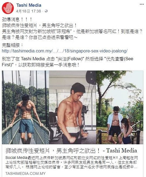 新加坡陳冠希『58性愛短片』流出!主角神隱