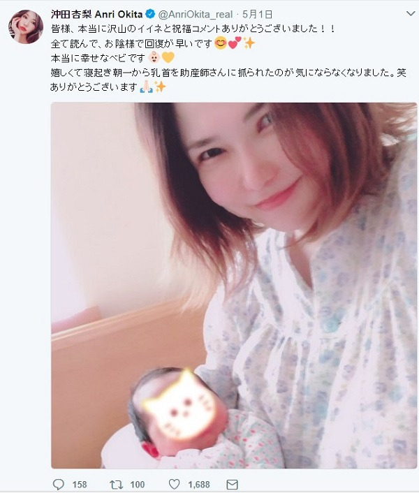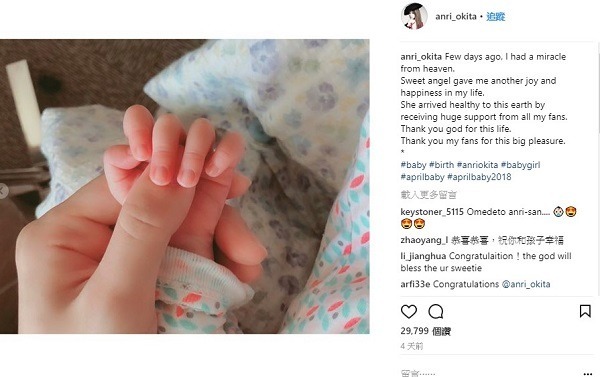 L奶的沖田杏梨當媽了呀!喜獲千金