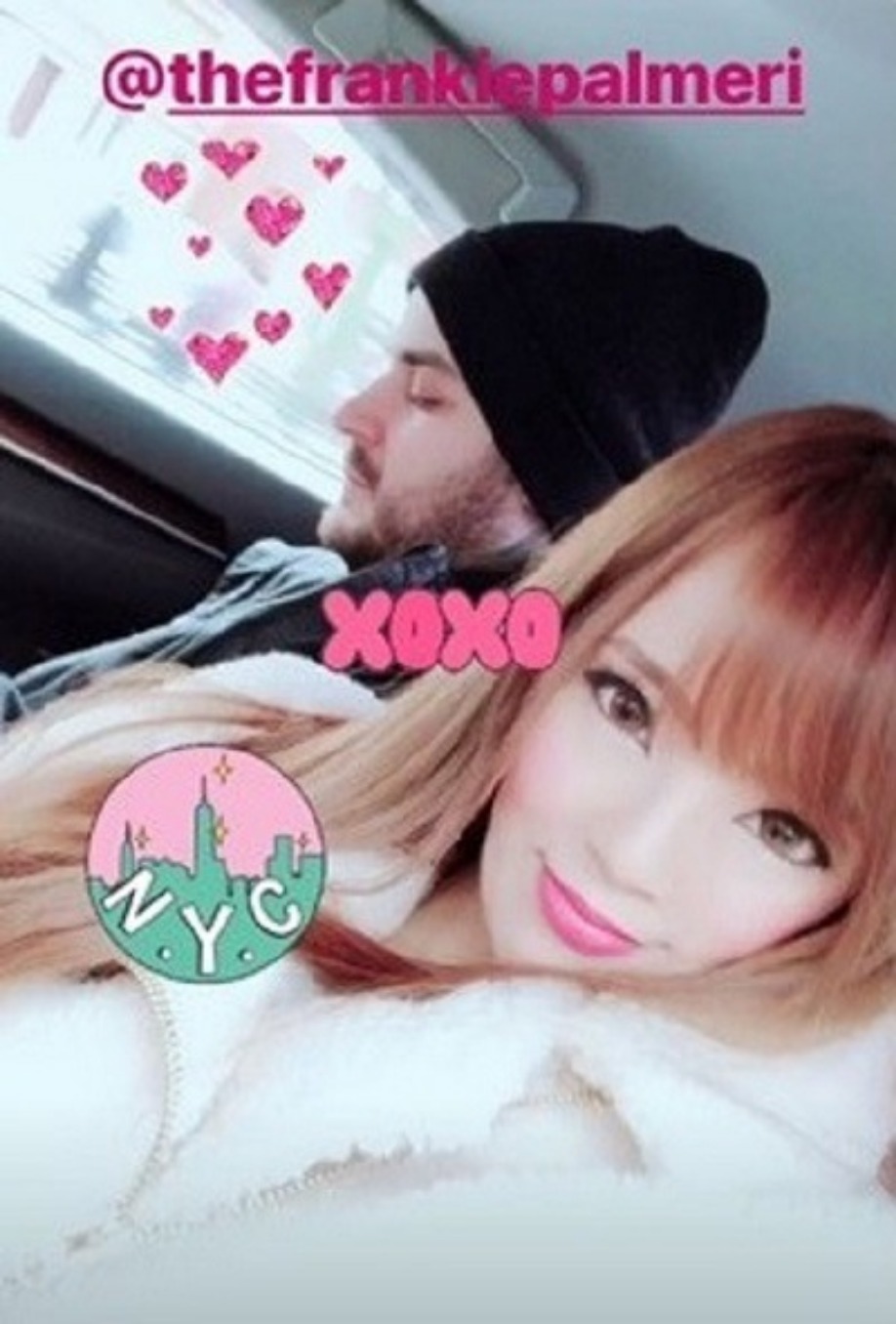 照片中看到兩人相擁入鏡,並於文內大方標註了男友的IG,眼尖網友立刻驚覺,她交往的對象不是普通人,而是美國金屬樂團Emmure的主唱Frankie Palmeri,震驚大票粉絲因為Frankie Palmeri是Emmure的主唱,除了主唱角色外,還擔任團中的詞曲創作人,才華洋溢、外型帥氣,令不少女網友稱羨,並且擁有大批粉絲。