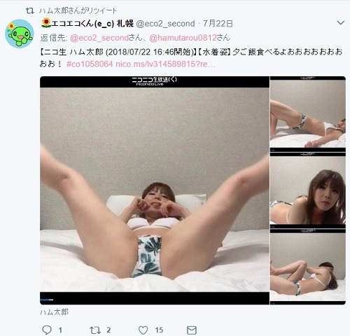 日本《東京體育報》報導,自2011年開始在niconico動畫進行直播的直播主「ハム太郎」,日前在實況直播中宣佈,自己將改名為AV女優「橘@ハム」,之後就會以這個名子出道拍AV。