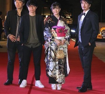 (高橋聖子與導演張凱智(左二)與男主角大西由希也(右)一同步入紅毯。)