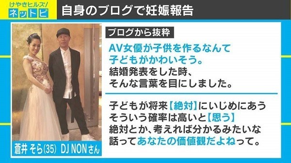 『蒼井空(蒼井そら)』當初在BLOG宣布懷孕,消息一出立刻讓她在日本討論區被罵翻了,而且罵得非常難聽!