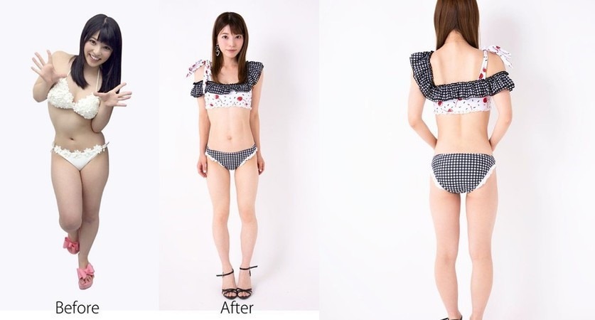 她IG上提到,努力的控制飲食少油少鹽,保持運動習慣,最後成功瘦了10公斤,最後就連體脂肪都降了7、8%,而且每天都要照鏡子觀察體型變化、告訴自己要持之以恆,所以身材與以往大不相同,她在IG貼出瘦身前後的對比照,不但瘦出大腿間的空隙,就連肉肉手臂,和傲人E罩杯都消失。