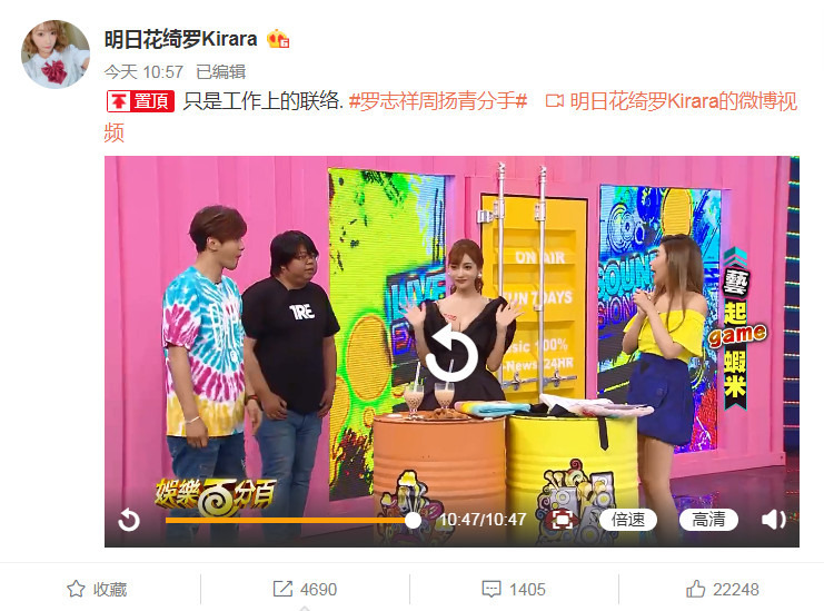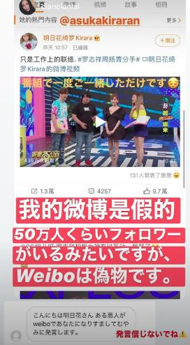 當大家對於天后跟羅志祥這段關係開始抽絲剝繭打算當柯南發現真相時,明日花綺羅就在官方 IG 發布限時動態,開門見山用中文打上: