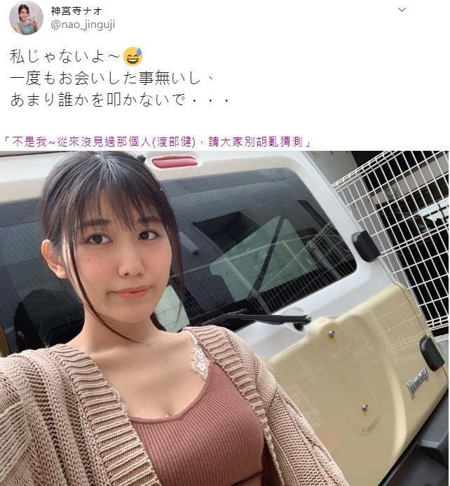 第一位是『神宮寺奈緒(神宮寺ナオ)』發文澄清,自己不是渡部建的小三,希望外界可以不要再謠傳。