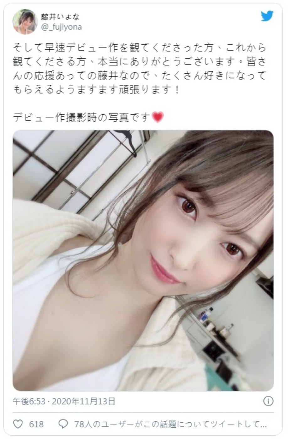 出道作品的封面以「大型新人誕生!美麗新星!」為標題,等待的期間真的讓人小鹿亂撞...實際見面之後,其實非常友善開朗好相處的女孩。