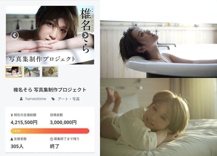 椎名空:“最終的眾籌金額為4,215,500日元。 非常感謝(i _ i)♡⠀⠀