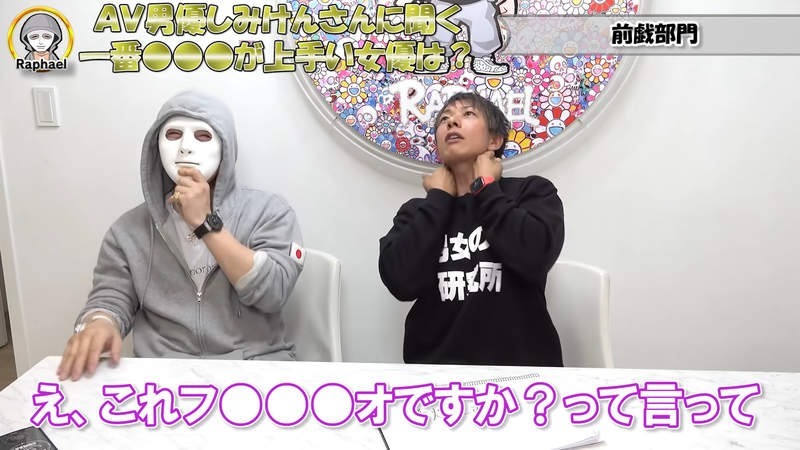 先簡單介紹一下,拉斐爾是日本一位很有名的youtuber,經常帶著面具去澀谷街頭採訪妹子,問一些很私密的問題,比如風俗店的小姐姐收入是多少、付多少錢可以帶到賓館之類的問題…拉斐爾神通廣大,可以採訪到AV天后「明日花綺羅(明日花キララ)」!這次更是採訪日本著名AV帝王清水健,大大的滿足了很多男人的獵奇心,因此在Youtube上的粉絲達到215萬。