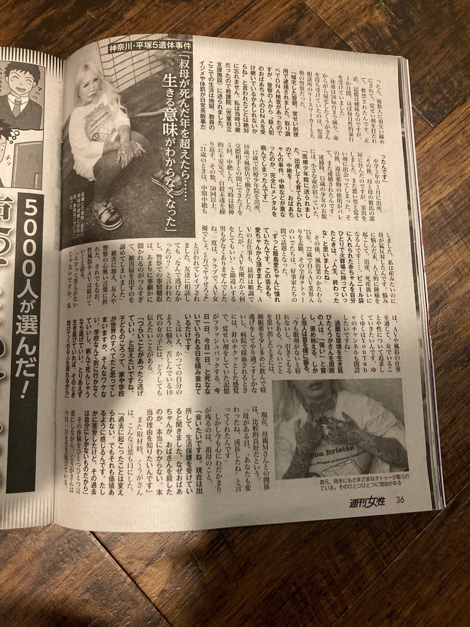 日本暗黑界發展十分發達,不少女優背後也有許多不為人知的故事,近來一名28歲的女優飯島KUGA,除了因為全身上下刺滿刺青而受到矚目之外,也透露其實自己的外婆就是犯下知名案件的殺人犯,可憐的家世背景曝光之後,而再度引起許多話題,在網上掀起一陣熱議!