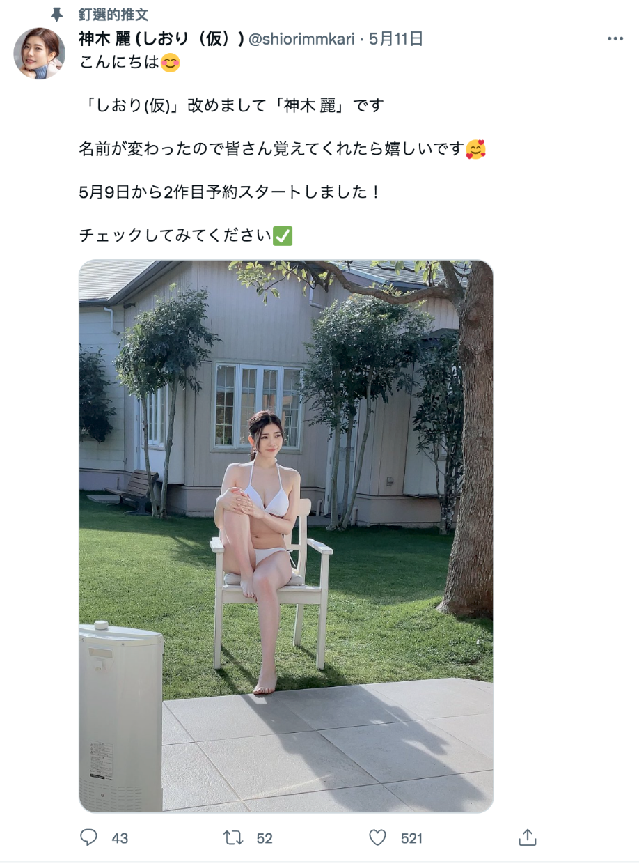 以暫定名稱出道的 しおり 不僅正式公開確定藝名為「神木麗」外、同樣一併釋出新作《突撃、お宅訪問えっち。SODstar 神木麗を発射無制限でお貸しします》預購消息,這可是所有男人敲破碗的一部作品!