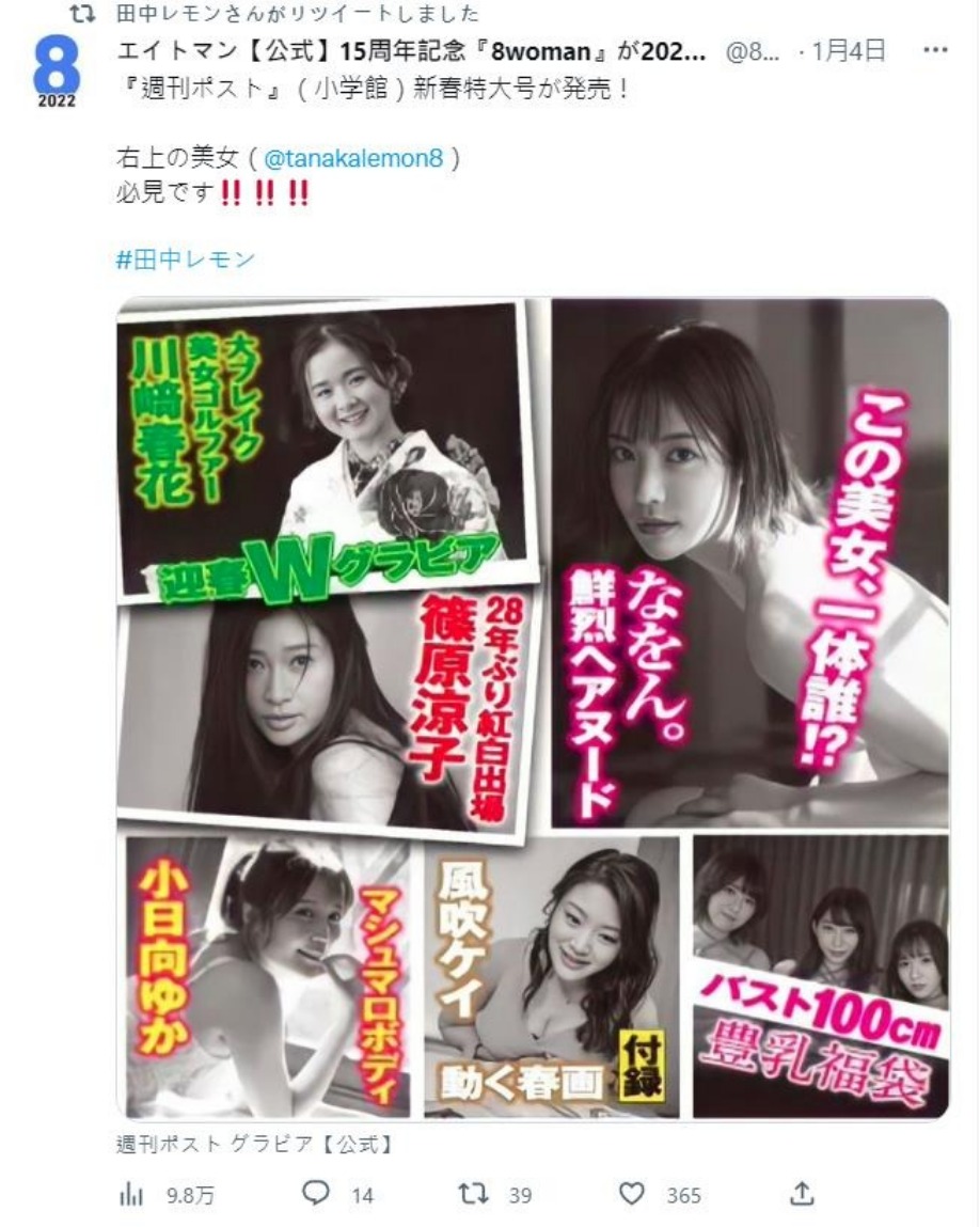 田中檸檬寫真已經4號發行,所以複出後的首部作品預計在3~4月份發行,請大家耐心等待吧!這個消息真的是AV界缺片潮下的一道曙光呢(淚奔~)HiLive enjoy your life!bye~bye。♥