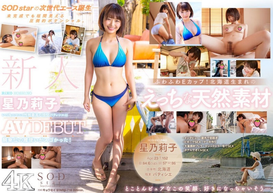 SOD Star推出的新人「星乃莉子」,留著一頭俏麗短髮,偶像等級的可愛臉蛋、身材苗條嬌小,身高雖然僅有152公分,加上超美的腰腹曲線,有著E罩杯的飽滿美極品巨乳小隻馬!不但笑顏120分,性愛更高達200分,超會搖的騎乘位讓男優都讚嘆不已!