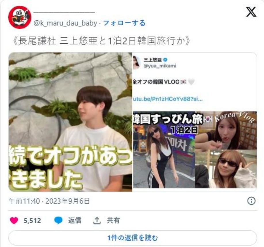 Kis-My-Ft2成員千賀健永與「浪花男子」成員長尾謙杜,繼續在同一晚分別到三上悠亞家中,不過傑尼斯事務所、三上悠亞的經紀公司,皆對相關緋聞沒有正面回應。