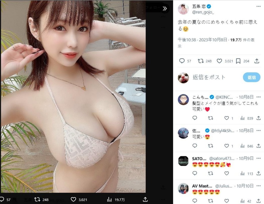《咒術迴戰》五條悟才因為變成「2.5條悟」引發粉絲暴動,沒想到這時大型美女片商 S1 居然推出的新人AV女優還這麼剛好叫做「五條戀(五条恋)」 XD ,美夕絕對懷疑 S1 是故意的。