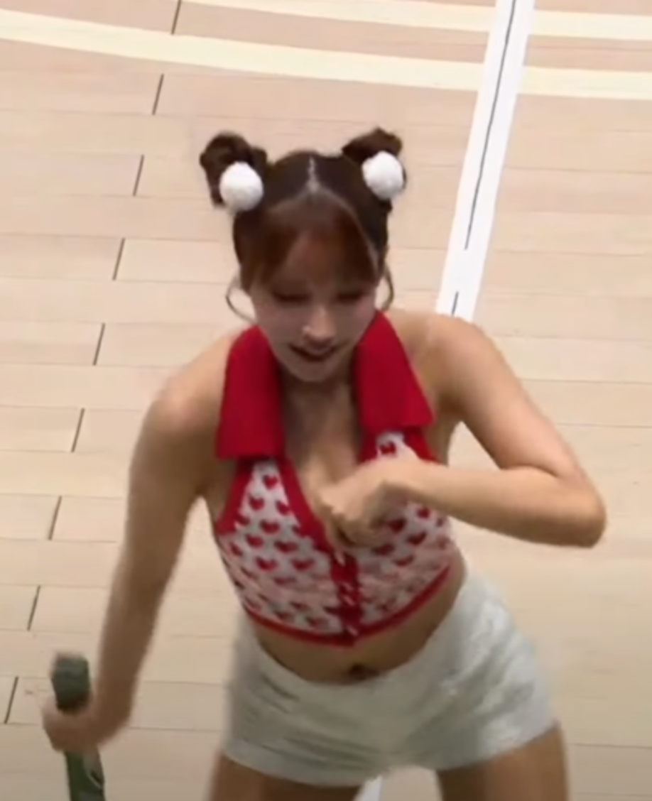 從偶像女團發跡的悠亞,整體舞藝相當出色,綁著俏皮雙丸子頭的悠亞實在太可愛了啦!開場穿著紅色背心與短褲,大露美背與小蠻腰,用招牌笑容加上出色舞蹈能力與啦啦隊成員大秀開場舞,在場上賣力應援,隨著音樂不斷彈跳熱舞,因為身穿紅色削肩小背心,魔鬼般好身材全露餡,沒想到在熱舞時竟發生小插曲,用力過猛的她,內裡的小可愛卻不小心狂下滑,她邊跳趕緊狂拉險些走光,養眼的畫面讓粉絲們忍不住一看再看,讓現場球迷大飽眼福暈船了。