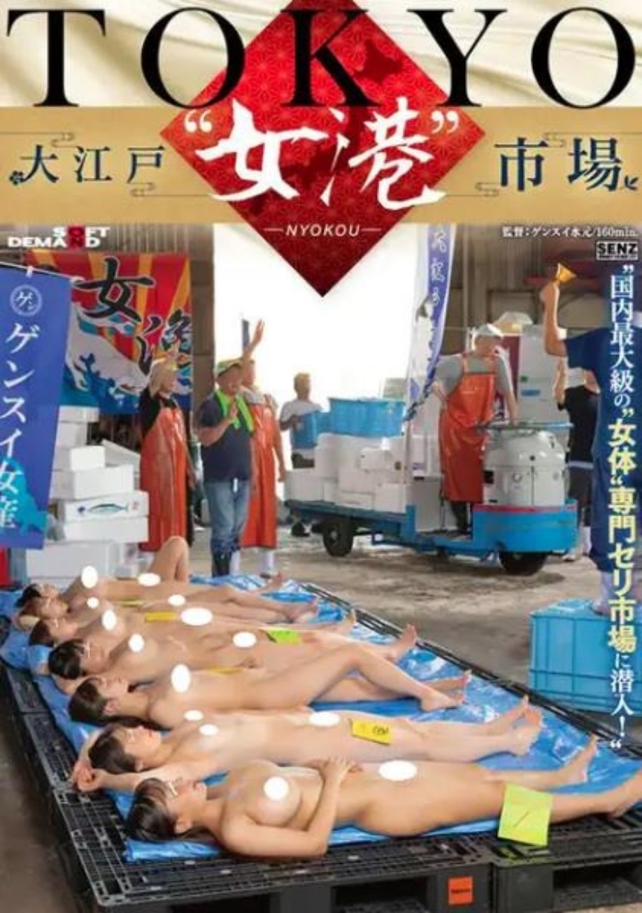 由 SOD 上架的作品《TOKYO-大江戸"女港"市場 国内最大級の"女体"専門セリ市場に潜入!》將批發市場日常的喊價競標、活魚配送,通通變成女體拍賣,打造了一個專門流通「女體」的拍賣場。