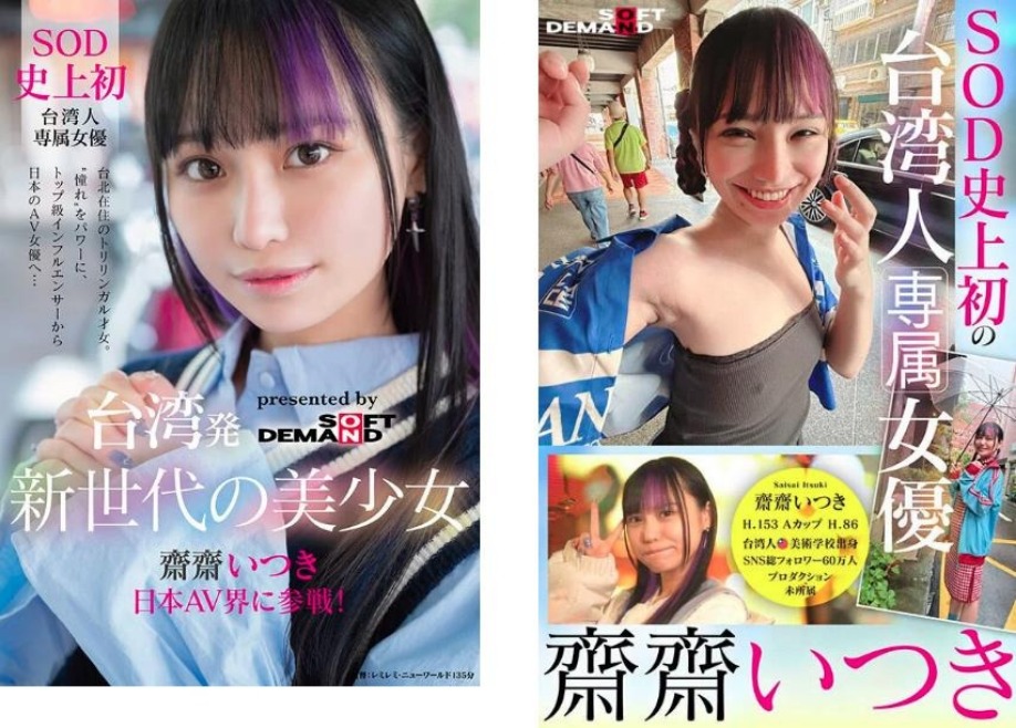 台灣的網路傳奇「齋齋樹(齋齋いつき)」,這位在社群媒體上擁有超過60萬粉絲的頂級網紅,正式與日本AV界的殿堂級片商 SOD(Soft On Demand) 簽下專屬合約,成為該公司創立以來,首位台灣籍的專屬女優!