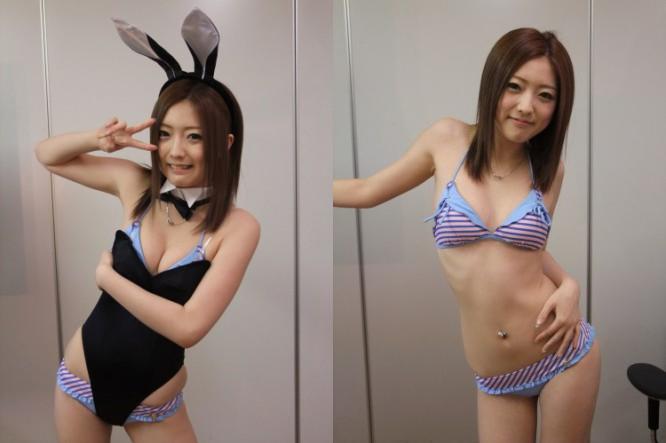 兔女郎這種程度的扮裝對藝人當然是小CASE,但讓她多穿件泳裝在裡面,反而讓她羞得不得了。另外也有女忍者等等漂亮的扮裝,最後還要陪觀眾欣賞自己的作品,簡直就是挑戰她臉紅的極限。真是難為妳了,小愛。