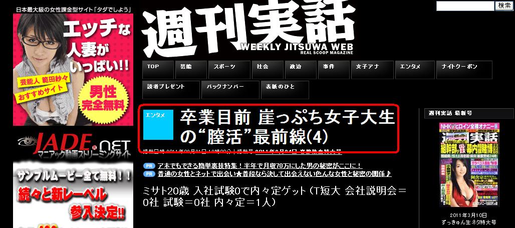 這是日本八卦周刊「實情周刊(週刊実話)」中一篇專訪的節錄內容。受訪者「美里」就讀的女子大學由於經濟不景氣之故發生了「畢業即失業」的窘況,畢業生們為了討生活只有不擇手段,不是拍A片就是跳火坑。「AV女優養成學校」其實並不是真的指這間學校在培育AV女優,而是用來形容這些畢業生走頭無路的窘況。