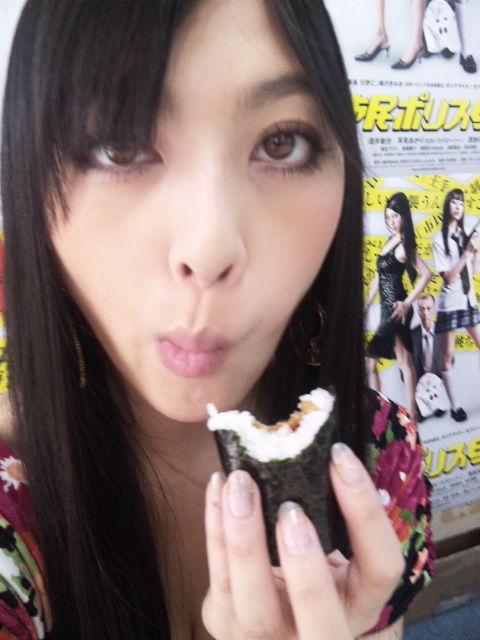 居然在大吃納豆捲。據說因為突如其來的大雪,這天原紗央莉在門前滑溜溜的霜上面跌了一大跤,屁股很痛的樣子。