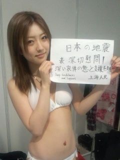 另外,SOD的超人氣話題新人片桐惠里里香(片桐えりりか)地震當天被困在電車上,雖然人沒受傷,但可能因為太過疲勞發高燒,禮拜天掛了急診,14日的網誌上還透露她體重一天就少了三公斤,十分嚇人。看來她雖然形象粗枝大葉但內心還是很纖細的呢!