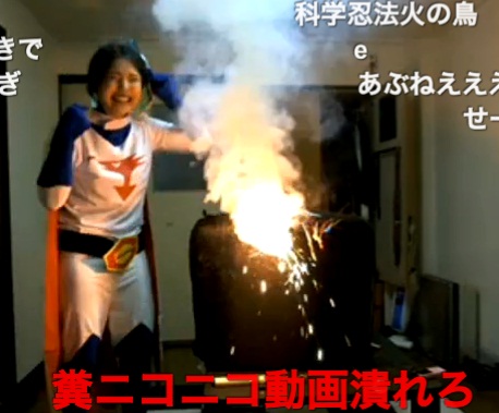6月3日,惠里里香帶著一套「科學小飛俠」的cosplay服裝和大量煙火,跑去拜訪一位認識的朋友,並且在對方的房間開Niconico的實況轉播。為了取悅收看實況的觀眾,她趁著朋友不在房間的時候,把煙火鋪在朋友的電腦椅上面,然後一口氣點燃!由於煙火造成大量的煙霧,觸動了火警感測器,弄得朋友還要氣急敗壞的來收拾殘局。
