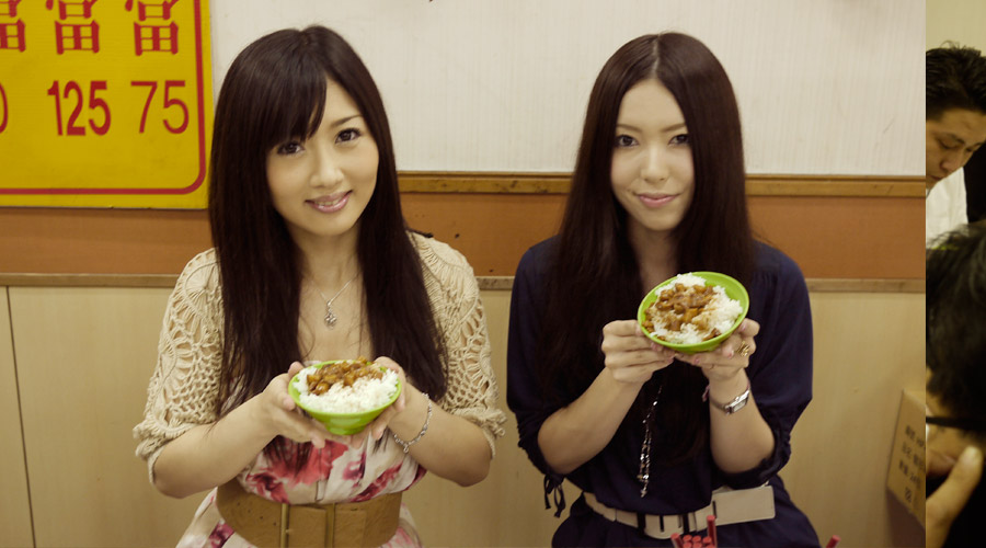 (除了上節目之外還不辭辛勞地上小吃店嘗滷肉飯。不過據說兩人的目標仍然是小籠包...)(照片來自ADULT EXPO)